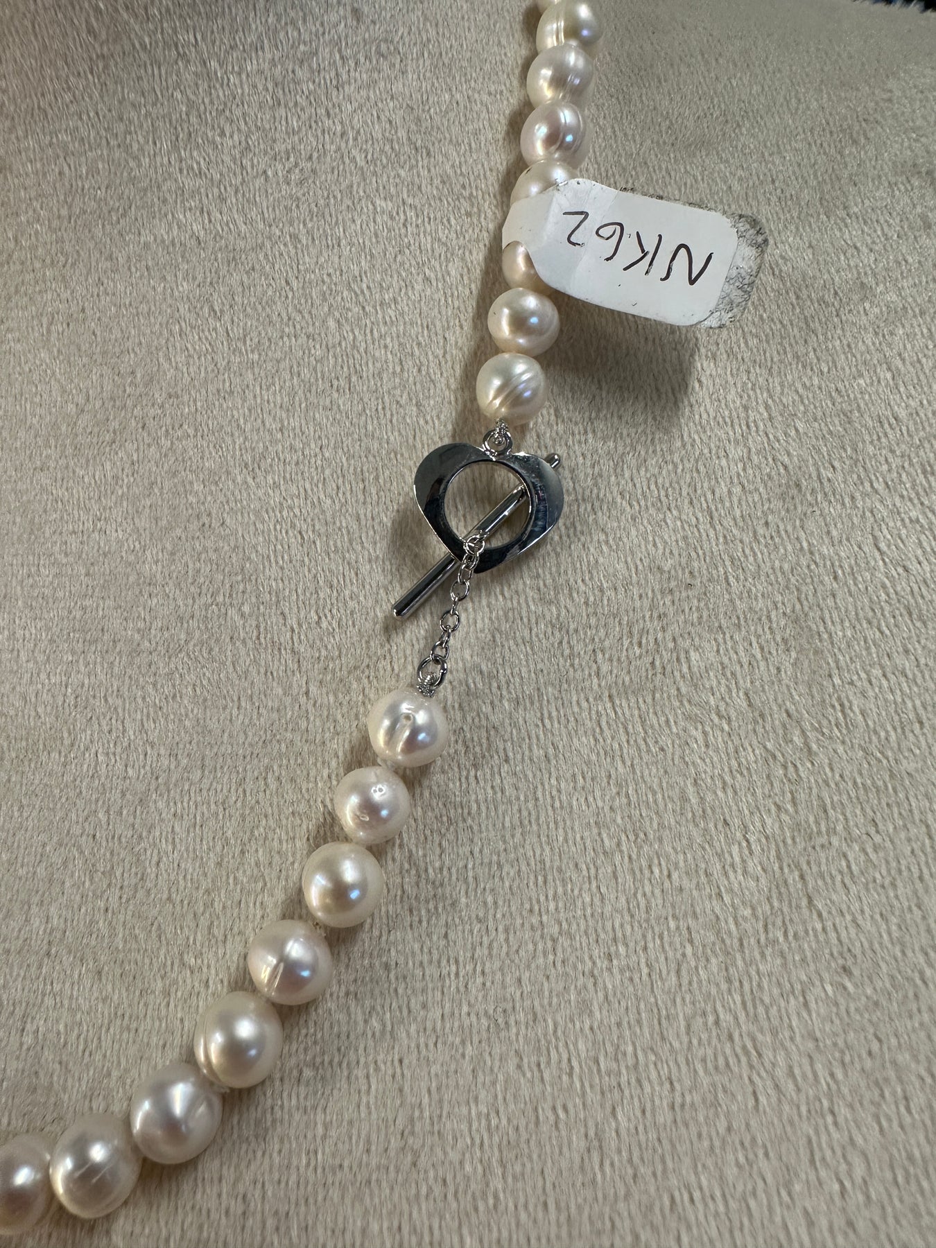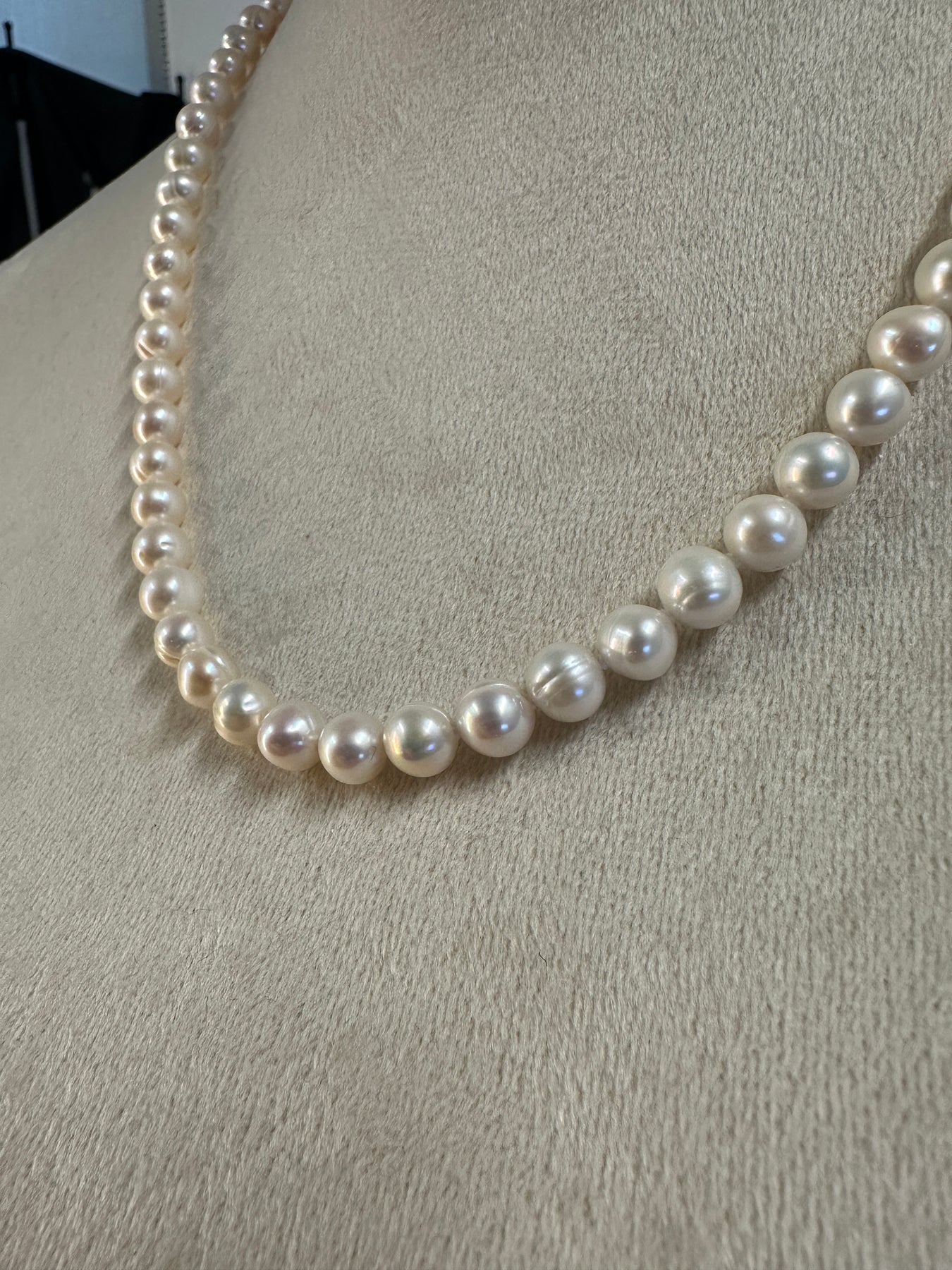 A 22 inch strand of off-round freshwater pearls with great luster on a sterling silver toggle clasp.