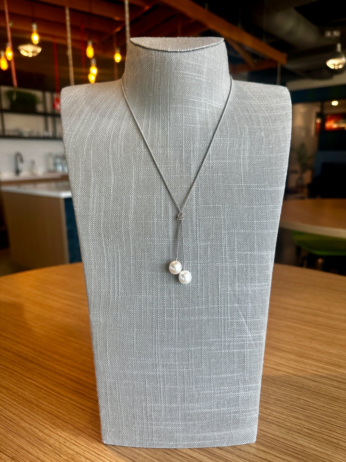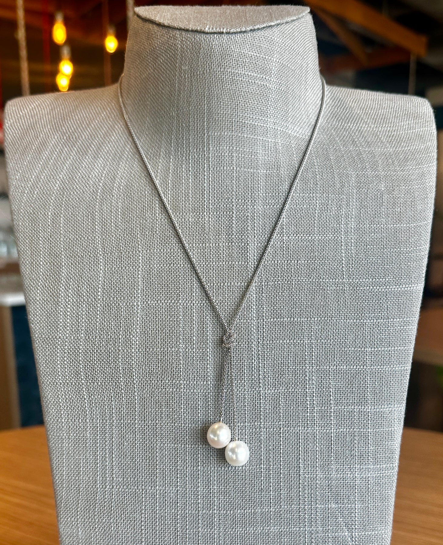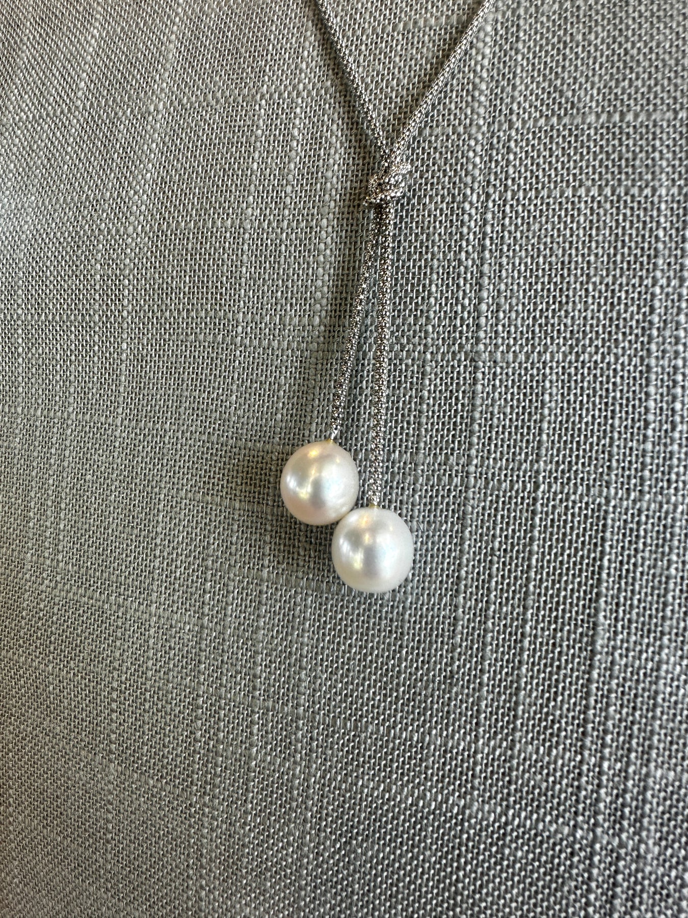 These beautiful freshwater pearls (11-2mm) are somewhat drop shaped and hang just perfectly next to each other, one slightly above the other. A small knot adds an element of style. The chain is crafted of 925 sterling silver, adjustable 17" - 18".