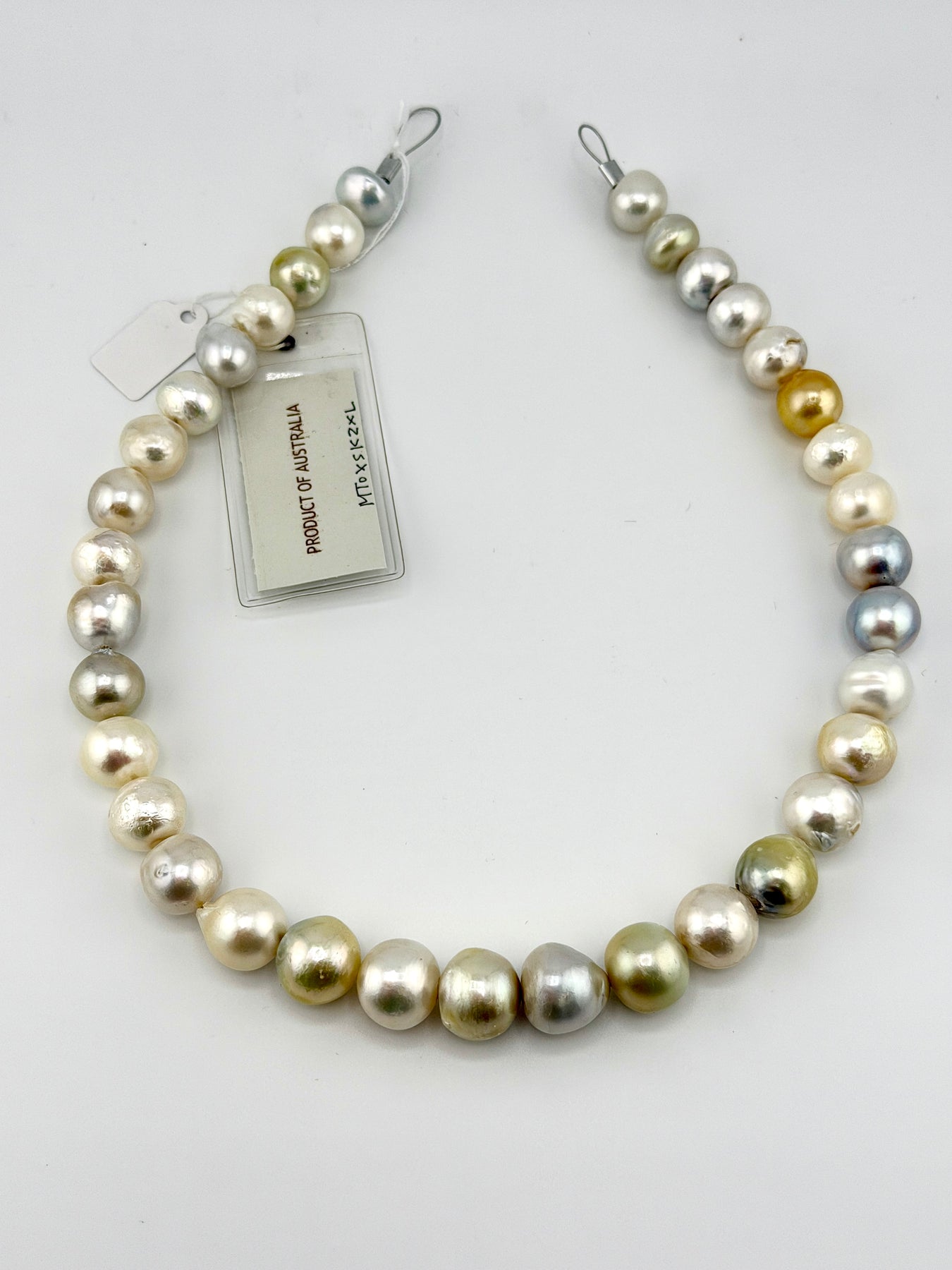 A South Sea strand of baroque pearls in natural varying colors. This strand has personality! The pearls are far from perfect, some with colored spotting, pits, ridges and uneven drill holes. It's a great way to participate in the South Sea look without the traditionally expensive prices!